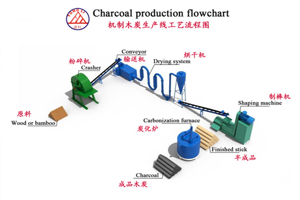 木炭機生產線生產流程及要求: